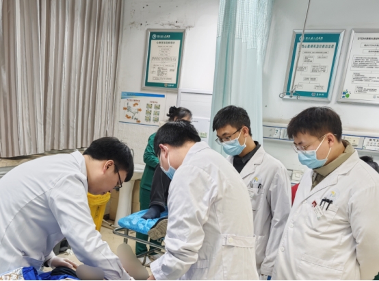 小昭入院后,急诊科医护团队迅速将他平车转运至抢救室,同步完成生命体征监测、吸氧、导尿、心电监护等急救措施。结合院外检查结果(CT提示肾脏损伤),予以静脉止血处理。值班医生在创伤中心谢德贵主任、急诊科邹江波主任的带领下立即启动创伤救治流程,与此同时外一病区、外四病区、ICU医生共同会诊后,完善头、颈、胸、上下腹及骨盆CT扫描。