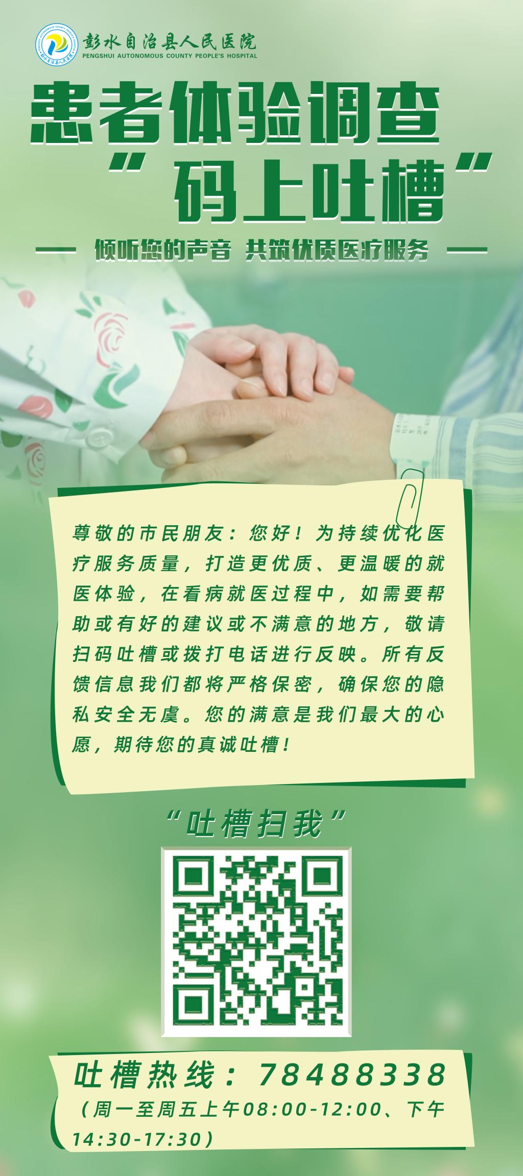 彭水自治县人民医院患者体验调查“码上吐槽”